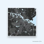 Three maps of Amsterdam showing the built-up area (grey) and surrounding landscape in 1799, 1901 and 2014.